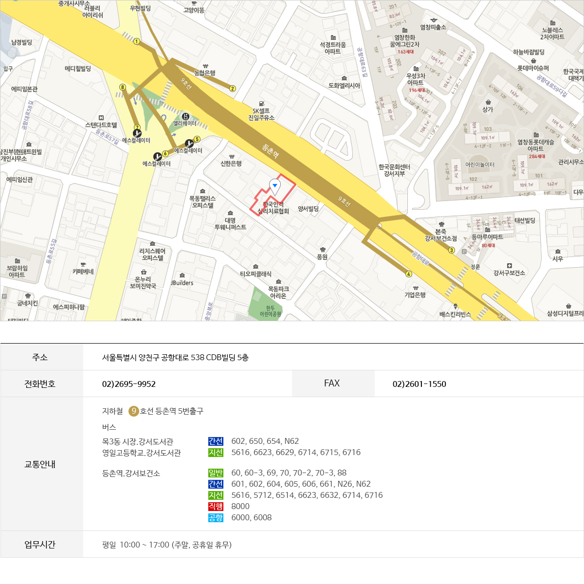 주소 : 서울특별시 양천구 공항대로 538 CDB빌딩 5층